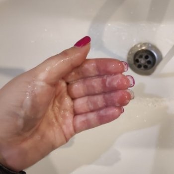 This is a great product took lots of water to get all the soap off for all 4 members of my family. However it did a great just washing just Stuck to your hand in a spot of two that required additional water to scrub off where it was stuck. Get to use when we are out and about these and a bottle of water.