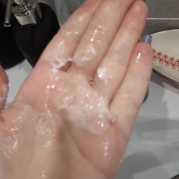 Very nice soap. Hot water is well washed off. Compact, suitable even for a small handbag. Convenient in shopping centers or polyclinics.